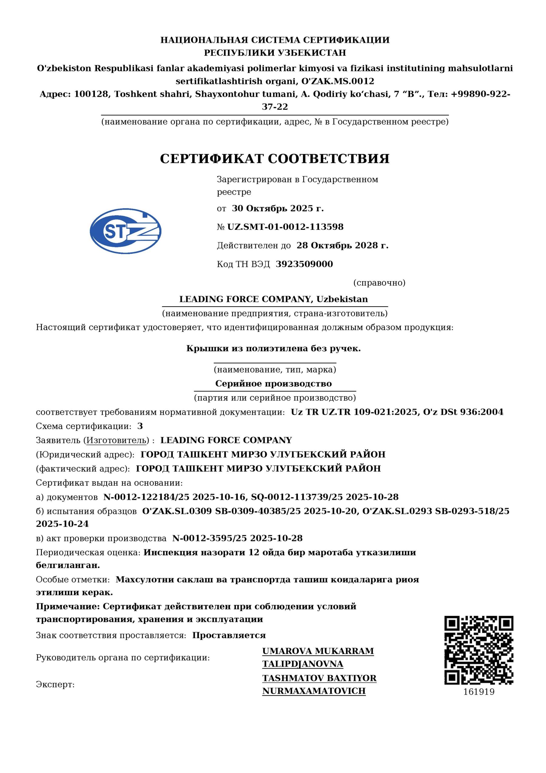Потребители, работающие на рынке розлива прохладительных напитков, заслуженно оценивают нашу продукцию, дают высокие отзывы о качестве производимых нами ПЭТ-преформ. Предлагаемая нами продукция соответствует всем предъявляемым нормам и стандартам в Узбекистане.